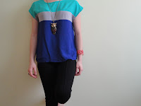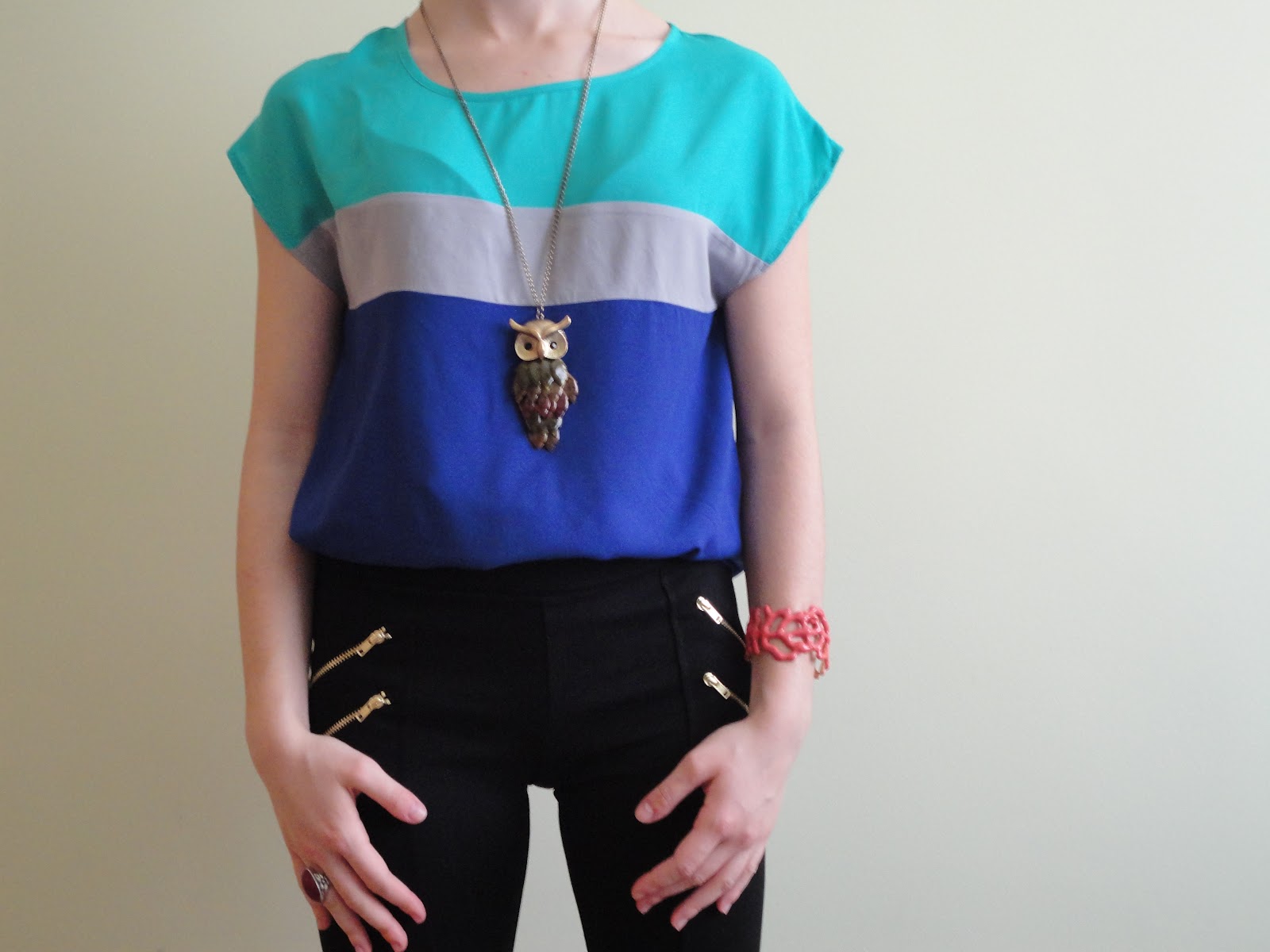 Este outfit está más dirigido a la noche. ha sido una petíción y por supuesto no tengo ningún problema en enseñaros lo que llevaría yo una noche de fiesta, quizá en verano. Como los colores flúor se están llevando bastante, decidí ponerme una camiseta en tonos azules muy llamativos y conjuntarla con estos leggins negros de cremalleras en dorado.