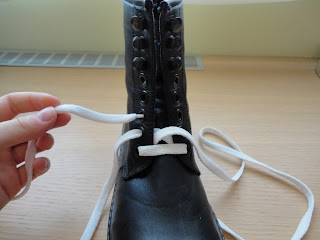 Colocamos los cordones, yo elegí los de color blanco ya que creo que quedan mejor.
