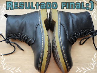 -Unatoallita, ya que la suela de la bota tiene que esta muy limpia porque luego vamos a pintar sobre ella. Si son nuevas no hace falta. Luego secamos la suela con un pañuelo.