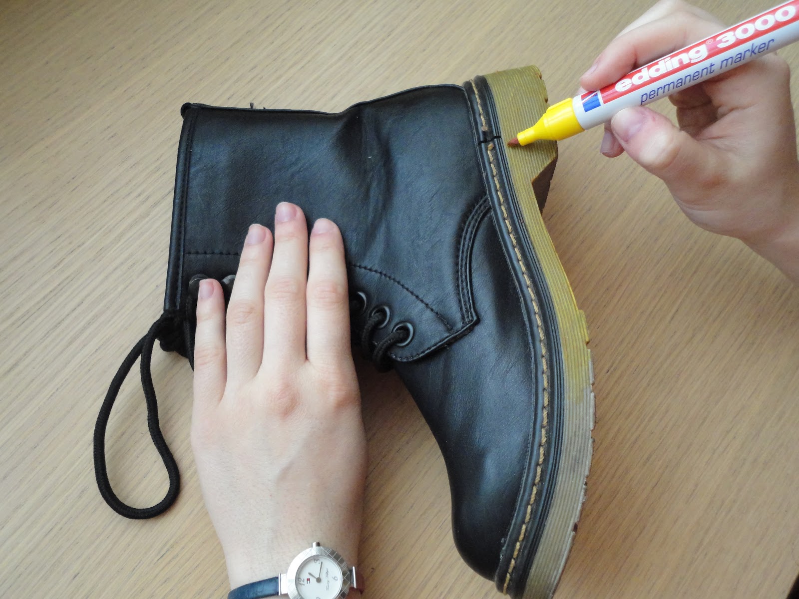Pintamos la suela como anteriormente dije. El rotulador es de la marca "edding" (2 €)