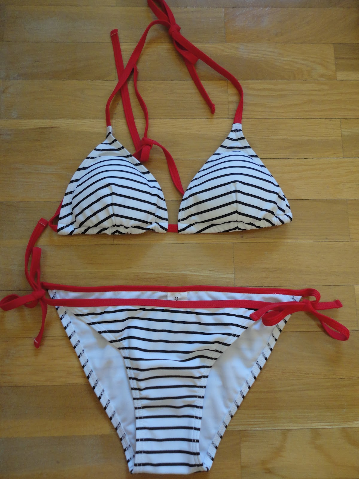 En Justo Muñoz, una tienda local (Justo Muñoz) , me compré este bikini, muy veraniego, en rojo y azul marino con estampado marinero. Costaba 25 € y lo conseguí por 19,99 €. Llevaba mucho tiempo queriendo un bikini de este estilo.